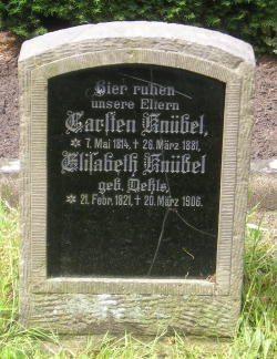 Friedhof Blumenthal. Er heiratet Margarete Knübel, 17 Feb 1884,