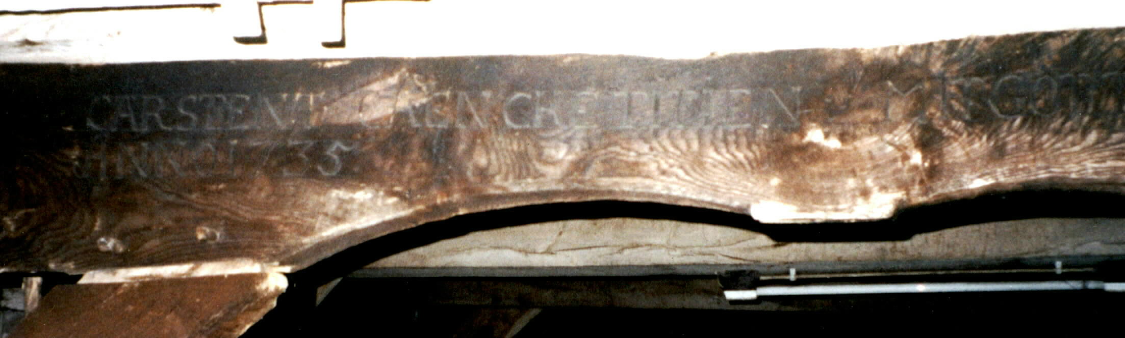 Im Schafstall befindet sich ein alter Balken, auf zu lesen ist - CARSTEN TIETJEN, ANNO 1735